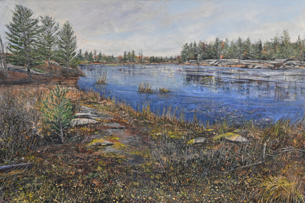 Hiking along a shoreline or exploring in a boat or canoe, with my sketchbook, paints and camera is a “happy place” for me.